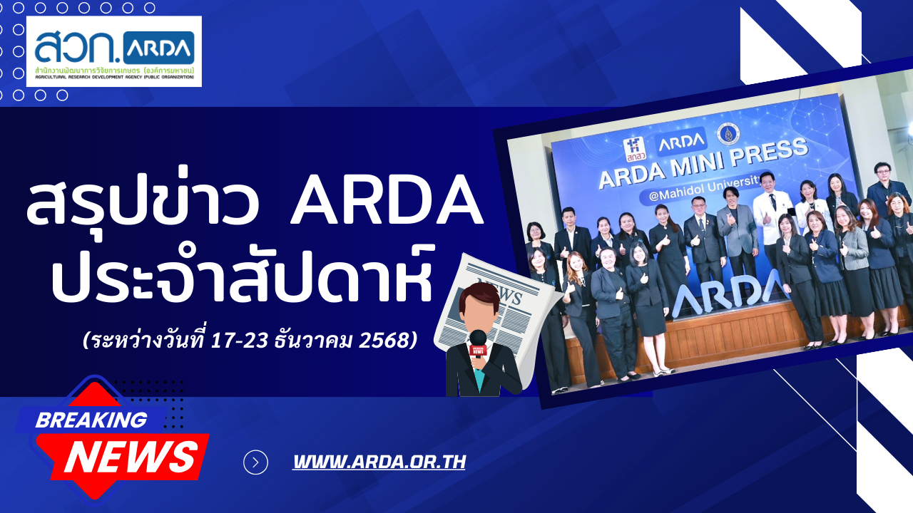 Policy forum Policy brief การอบรมเผยแพร่ความรู้ Easy-Knowledge E-book Infographic Motion graphic VDO ผลงานวิจัยเชิงพาณิชย์พร้อมใช้ ผลงานที่ได้รับอนุญาตใช้สิทธิจาก สวก. Tech2biz Thailand techshow ผลงานที่ได้รับรางวัล©2022 สำนักงานพัฒนาการวิจัยการเกษตร (องค์การมหาชน)